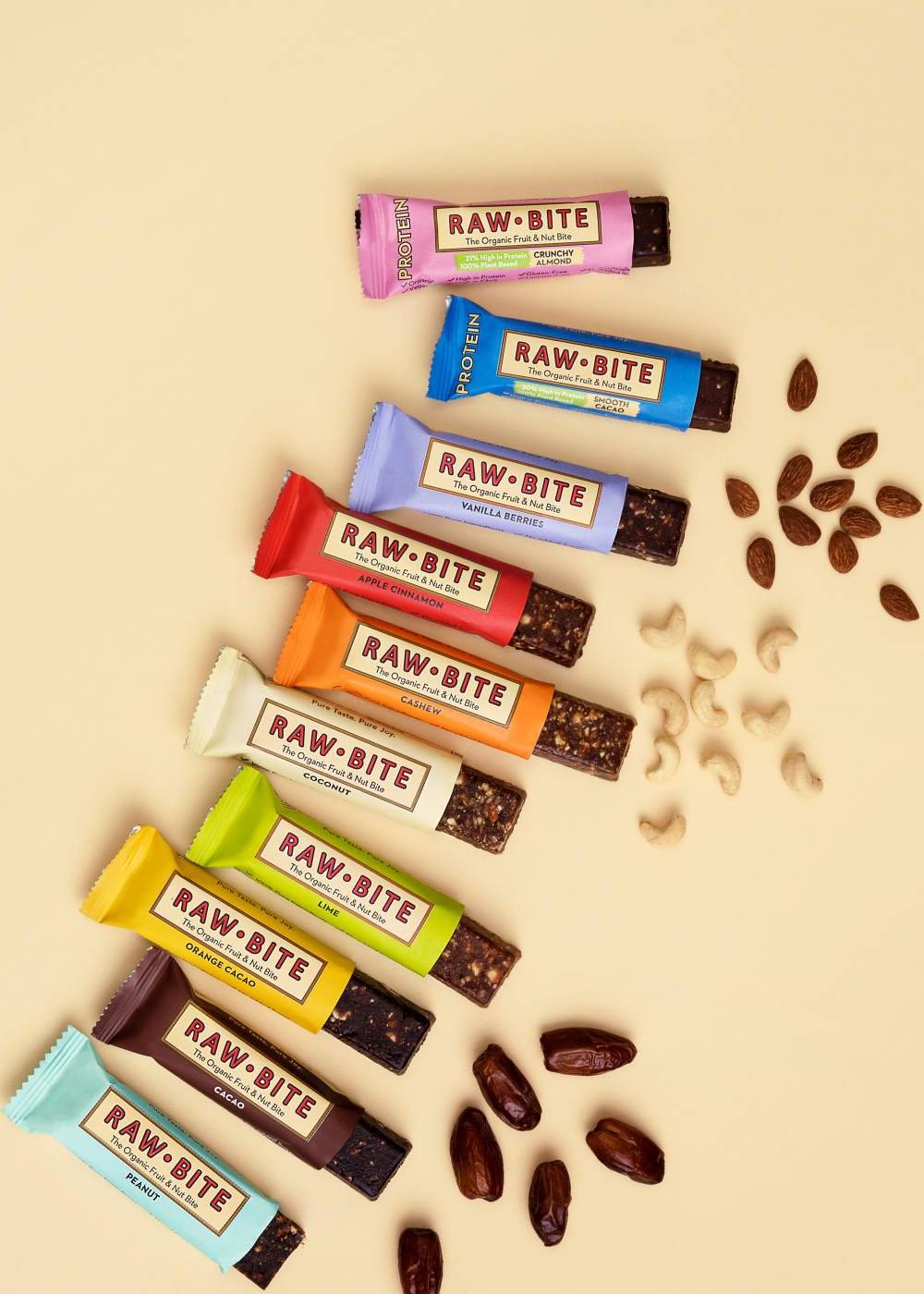 Vores barer er den perfekte snack til dit daglige liv, da den er nem at medbringe. Tanken bag RAWBITE var, at skabe en bar der kun indeholder få nøje udvalgte ingredienser. En bar der er fiberrig og smager lækkert. Den er velegnet til at overvinde din sult, og den fungerer perfekt før og efter en træning. RAWBITE barer tværer hverken ud eller smuldrer, og de bevarer deres tekstur ved både kolde og varme temperaturer. Dermed er de bare perfekte til at have med på farten!